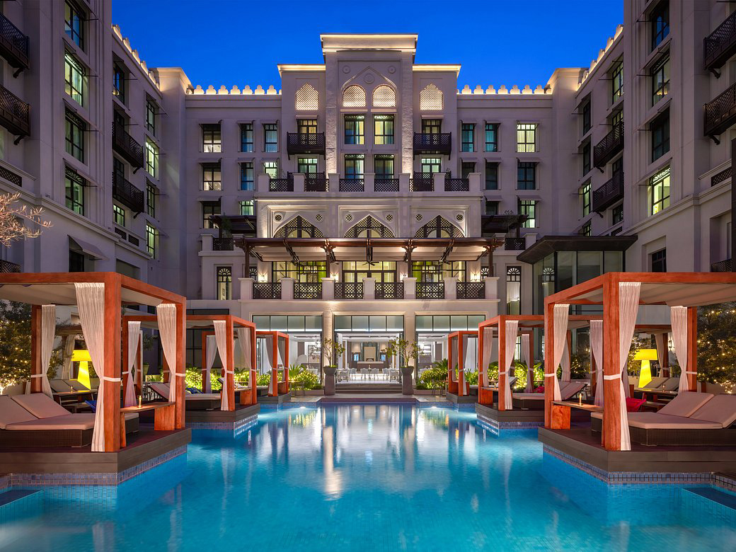 Upon arrival, guests are greeted by a grand lobby adorned with contemporary artwork and cascading chandeliers, setting the tone for an unforgettable stay. The hotel offers a range of lavish accommodations, from spacious suites to meticulously appointed guest rooms, each designed to provide the utmost comfort and style.